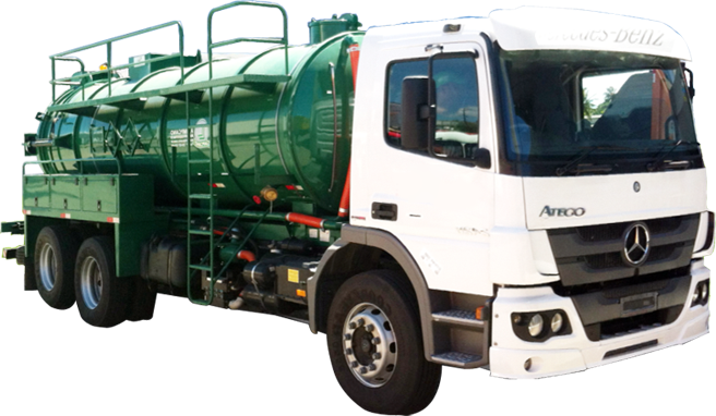 Caminhão combinado com bombas de hidrojateamento e auto vácuo. Utilizado para desobstrução de galerias, bueiros, bocas de lobo, caixas de gordura, tubulações de esgoto de até 2 metros de diâmetro e limpeza de fossa. Serviços de hidrojateamento com solução eficaz.